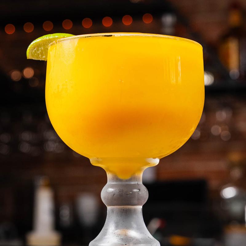 Margarita blended with rich mango purée, a splash of mango liqueur, and swirled with tangy chamoy, and tajin on the rim.